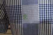 第二ボタンに間隔を狭めて開けたときのバランスを良くするなどや 台襟やガゼットをモノトーンチェックにするなど